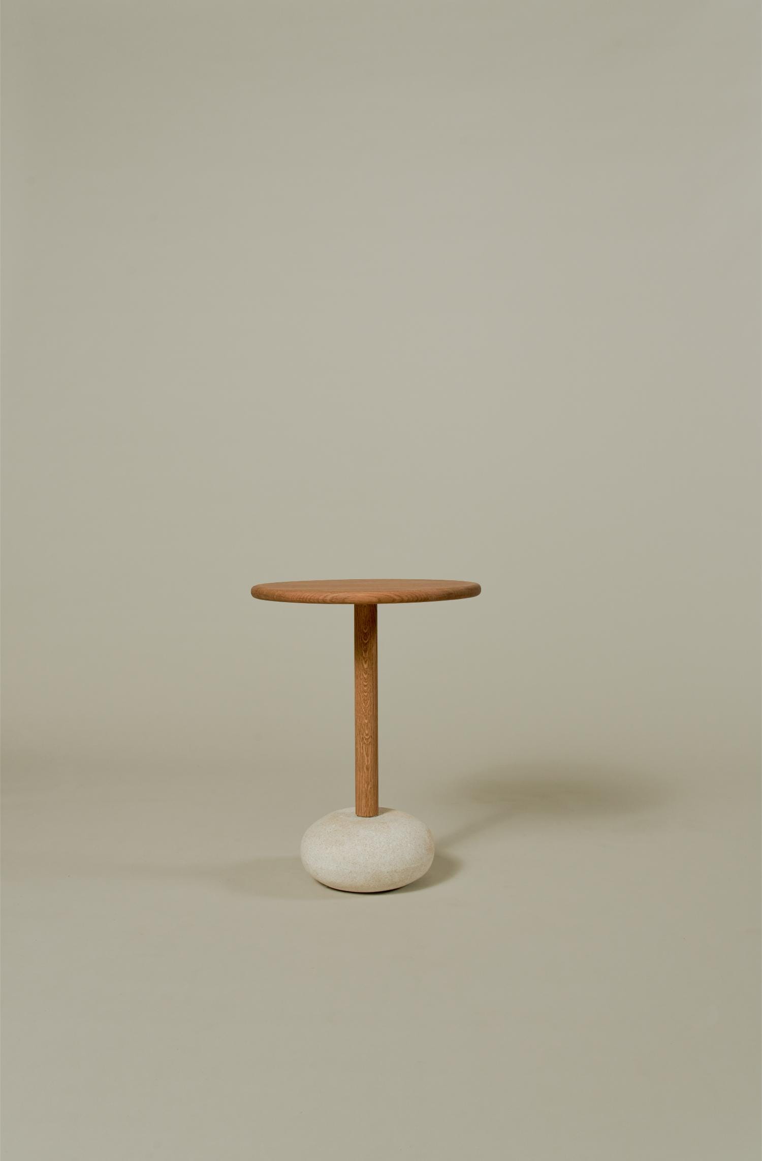 De Owen bijzettafel onderscheidt zich met een speels karakter: een robuuste Durastone voet gecombineerd met een warm massief eiken blad. Deze eigenzinnige combinatie staat garant voor duurzaamheid én een moderne uitstraling — een functioneel stuk met kunstzinnige expressie.