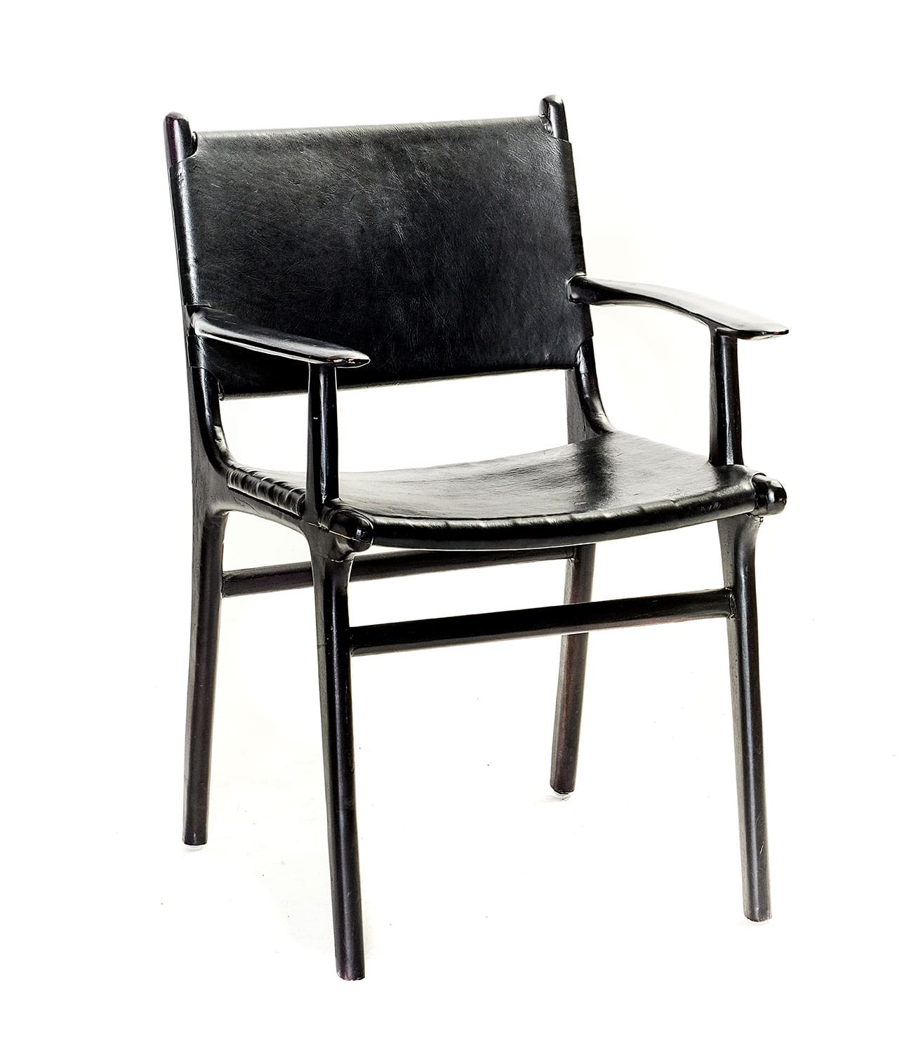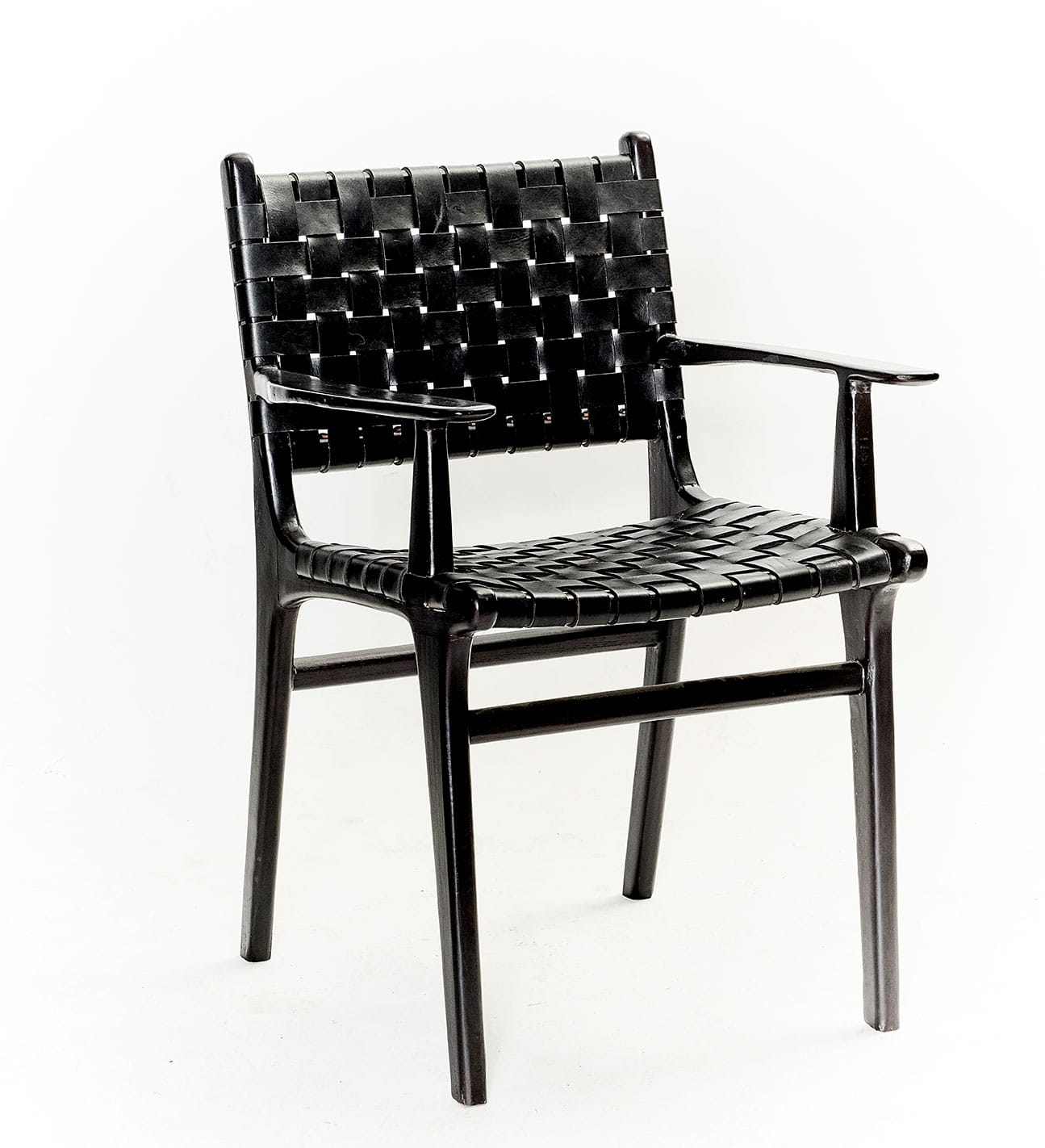 The Bohema chairs are crafted with solid black-stained wood and upholstered in sleek black leather, offering a sophisticated, modern look. Choose between braided leather or plain leather for a custom touch that enhances the chair’s bold, timeless design.