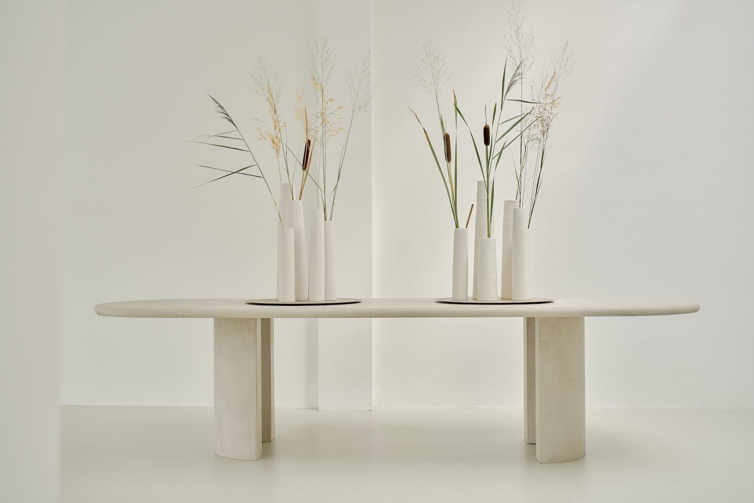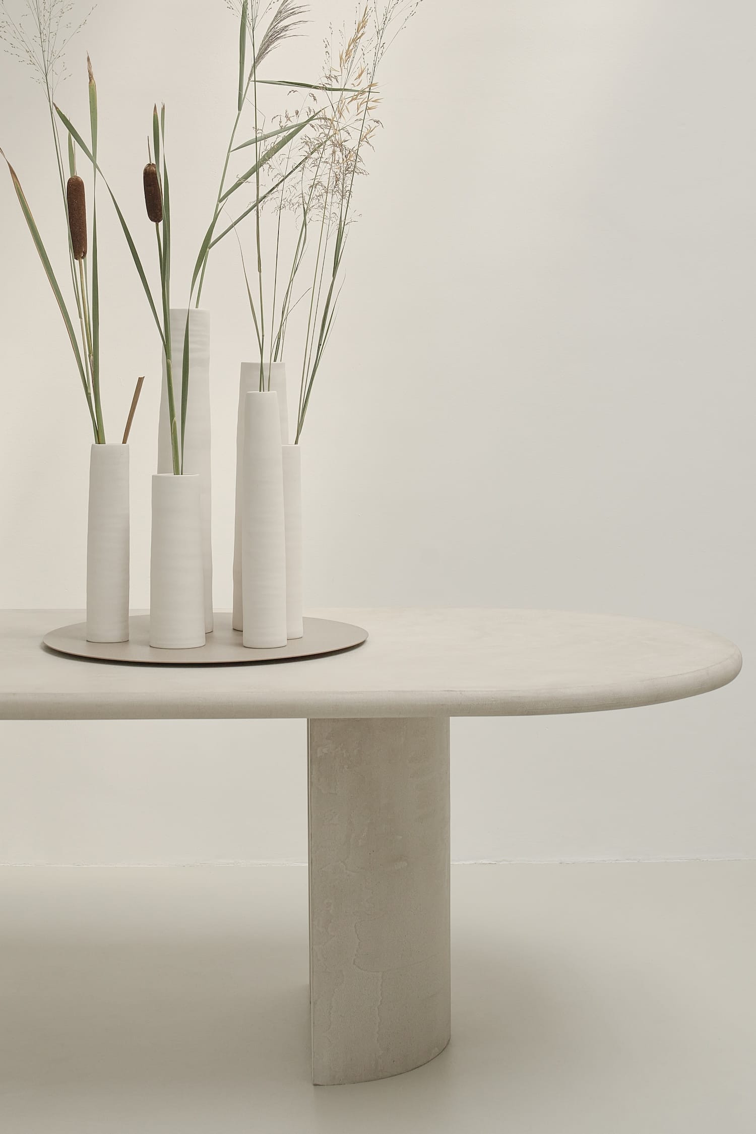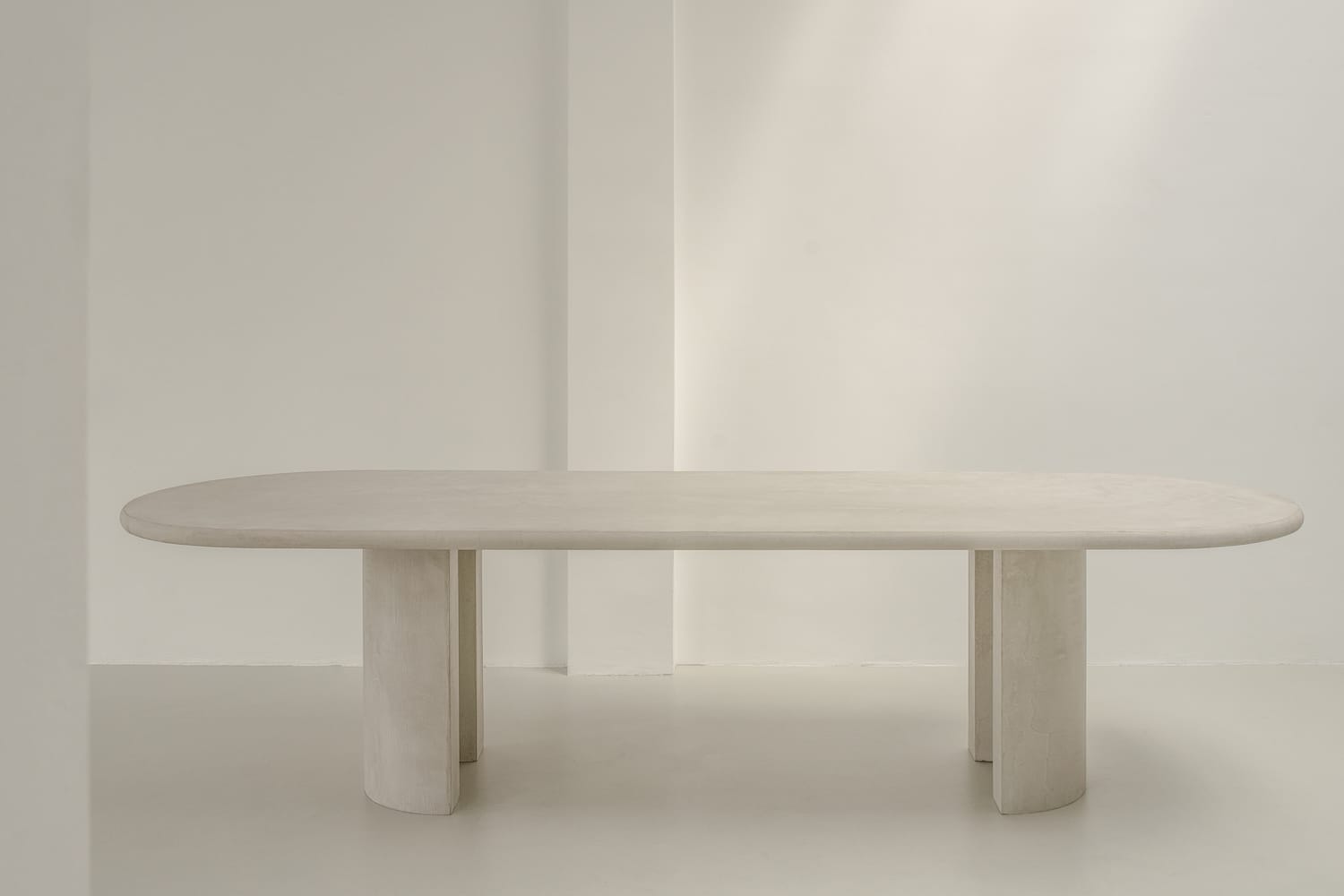 The Seine dining table embodies simplicity and elegance, crafted to your preferred size for a perfect fit in any space. Available in two refined stucco colors, off-white and biscuit, it exudes understated charm. Handmade in a local atelier in the Netherlands, this table showcases the timeless beauty of artisanal craftsmanship.